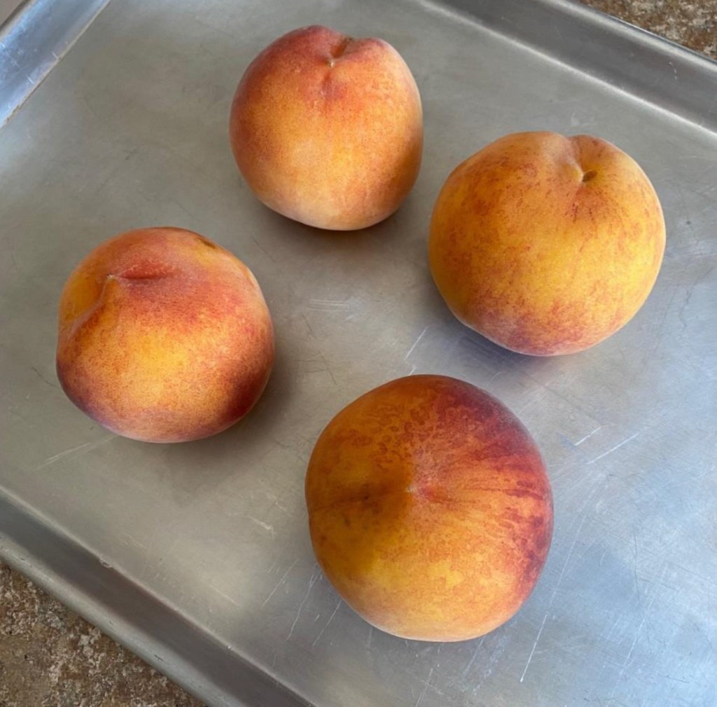 Our pattern each year is much the same. The first lug we purchase lasts about five days as we sate ourselves on the sweet tender fruit. We are the indirect beneficiaries of ancient traders in China who dispersed peach trees around the world. Some cultures, including the Greco-Roman culture, referred to peaches as fruit of the gods. After handily consuming the first box, we then purchase a second lug, though we wend our way through it in a more leisurely fashion. Ultimately, panic buying ensues, necessitating the purchase of a third box as the overall peach supply dwindles. Only when we are finally tired of the ever increasing fruit fly population in the house do we conclude to freeze the rest, knowing that we are running out of time to eat them all.