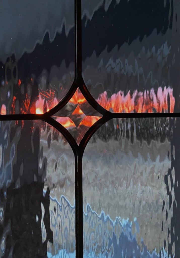 One could imagine that a steady diet of them day in and day out would render them too boring to warrant a second glance. Nothing could be further from the truth. Celestial nuance is a specialty of the Creator! Each time we have seemingly exhausted the various ways sunrises and sunsets present themselves, a new and different perspective pushes its way to the forefront. One of the most recent entries involved a few points of early morning sun twisting their way through the angles and bevels of a leaded glass window.