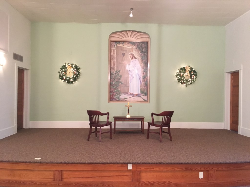 The church continues to welcome all who wish to come. Reminders of long-time member and artist, the late Jesse (Whitney) Scott, decorate the interior of the building, including a life-size oil of “Christ Knocking at the Hearts Door” that hangs behind the pulpit and stained-glass windows that depict the life of Christ.