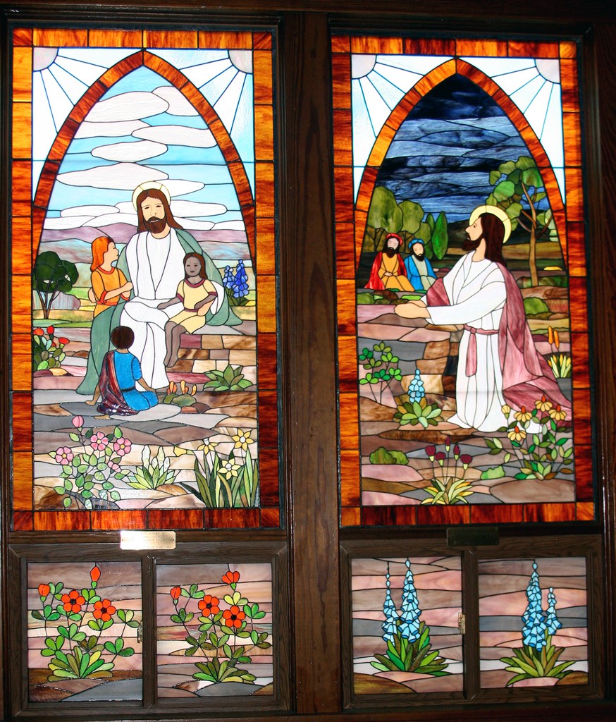 • Jesus with children (1995) commissioned by the Kinzie family in memory of Otis and Nora Dinsmore and Virgil Mathew Kinzie;